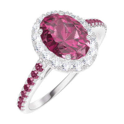 « L'ATELIER » Nº170444Anillo Oro blanco 9 quilates - Rubí Ovalo 0.5 quilates - Halo Diamante - Engastado Rubí 4.5