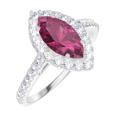 « L'ATELIER » N.º 170536Anillo Oro blanco 9 quilates - Rubí Marquesa 0.5 quilates - Halo Diamante - Engastado Diamante