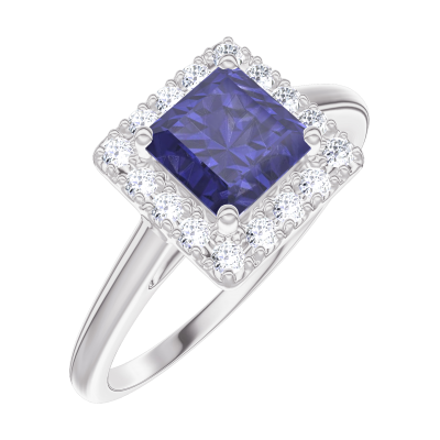 « L'ATELIER » N.º 170628Anillo Oro blanco 9 quilates - Zafiro azul Princesa 0.5 quilates - Halo Diamante 4.1