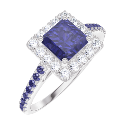 « L'ATELIER » N.º 170639Anillo Oro blanco 18 quilates - Zafiro azul Princesa 0.5 quilates - Halo Diamante - Engastado Zafiro azul 4.1