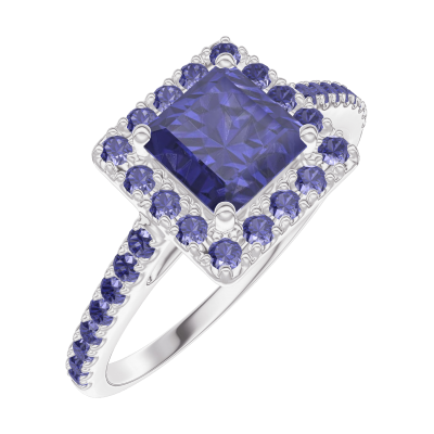« L'ATELIER » Nº170672Anillo Oro blanco 9 quilates - Zafiro azul Princesa 0.5 quilates - Halo Zafiro azul - Engastado Zafiro azul 4.1 (10)