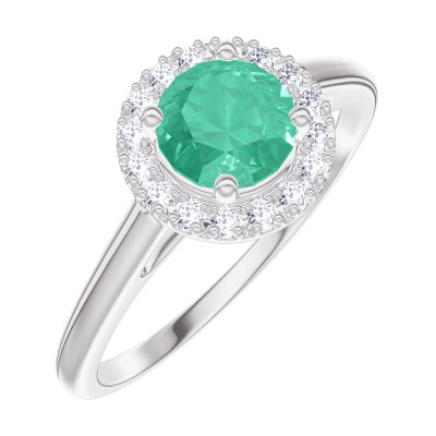 « L'ATELIER » N.º 170867Anillo Oro blanco 18 quilates - Esmeralda redondo 0.5 quilates - Halo Diamante 4.7
