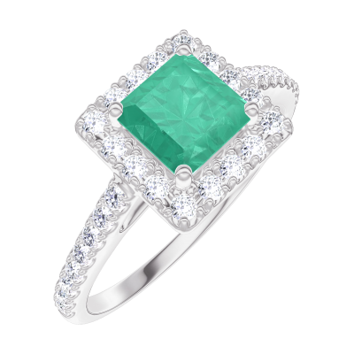 « L'ATELIER » N.º 170920Anillo Oro blanco 9 quilates - Esmeralda Princesa 0.5 quilates - Halo Diamante - Engastado Diamante 4.1