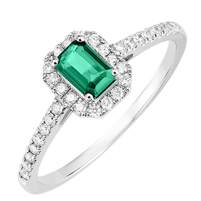 « L'ATELIER » N.º 170967Anillo Oro blanco 18 quilates - Esmeralda Rectángulo 0.5 quilates - Halo Diamante - Engastado Diamante 4.7