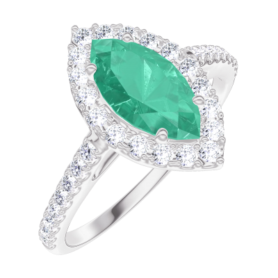 « L'ATELIER » N.º 171112Anillo Oro blanco 9 quilates - Esmeralda Marquesa 0.5 quilates - Halo Diamante - Engastado Diamante