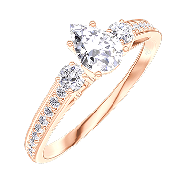 « L'ATELIER » N.º 175012Anillo Oro rosa 18 quilates - Diamante Pera 0.3 quilates - Piedras laterales Diamante - Engastado Diamante