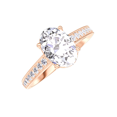 Anillo Oro rosa 9 quilates - Diamante de laboratorio Ovalo 1 quilates - Engastado Diamante de laboratorio