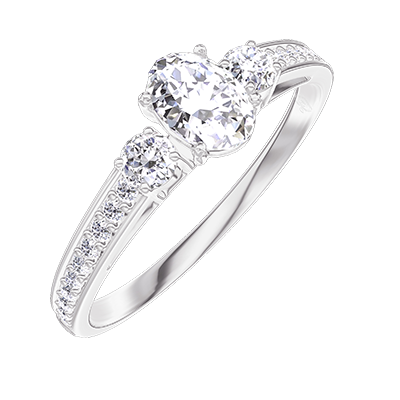 « L'ATELIER » N.º 180328Anillo Oro blanco 9 quilates - Diamante de laboratorio Ovalo 0.3 quilates - Piedras laterales Diamante de laboratorio - Engastado Diamante de laboratorio 5
