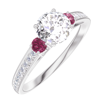 « L'ATELIER » Nº182448Anillo Oro blanco 9 quilates - Diamante de laboratorio redondo 0.5 quilates - Piedras laterales Rubí - Engastado Diamante de laboratorio 4.5 (15)