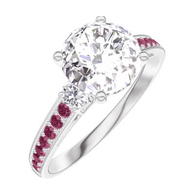« L'ATELIER » N.º 187231Anillo Oro blanco 18 quilates - Diamante de laboratorio redondo 1 quilates - Piedras laterales Diamante de laboratorio - Engastado Rubí 4.8