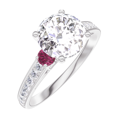 « L'ATELIER » Nº187248Anillo Oro blanco 9 quilates - Diamante de laboratorio redondo 1 quilates - Piedras laterales Rubí - Engastado Diamante de laboratorio 4.7