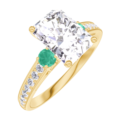 « L'ATELIER » N.º 187486Anillo Oro amarillo 9 quilates - Diamante de laboratorio Rectángulo 1 quilates - Piedras laterales Esmeralda - Engastado Diamante de laboratorio 4.6