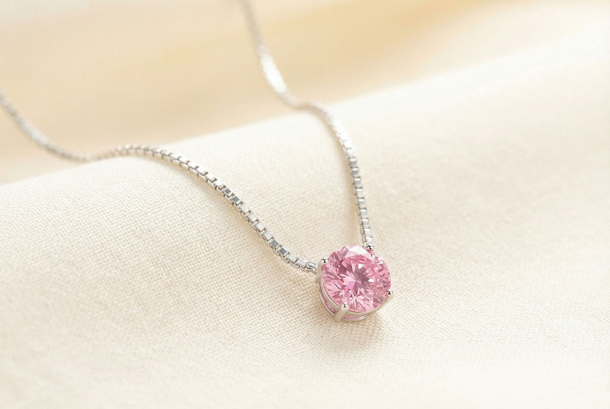 « L'ATELIER » N.º 189622Collar Oro blanco 18 quilates - Zafiro rosa redondo 0.3 quilates - Cadenas Veneciana 4.6
