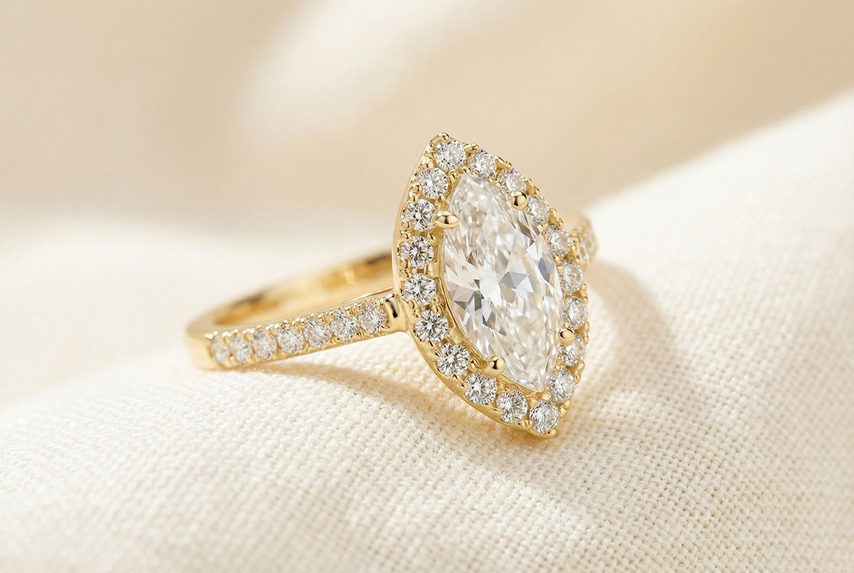 « L'ATELIER » N.º 190245Anillo Oro amarillo 18 quilates - Diamante de laboratorio Marquesa 0.5 quilates - Halo Diamante de laboratorio - Engastado Diamante de laboratorio