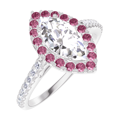 « L'ATELIER » N.º 190263Anillo Oro blanco 18 quilates - Diamante de laboratorio Marquesa 0.5 quilates - Halo Rubí - Engastado Diamante de laboratorio