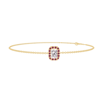« L'ATELIER » Nº200081Pulsera Oro amarillo 18 quilates - Diamante Rectángulo 0.3 quilates - Halo Rubí - Cadenas Esclavas