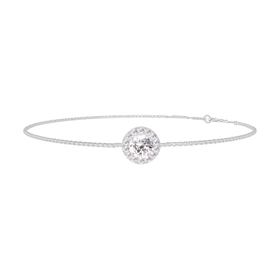 « L'ATELIER » N.º 200207Pulsera Oro blanco 18 quilates - Diamante de laboratorio redondo 0.3 quilates - Halo Diamante de laboratorio - Cadenas Veneciana 4.7