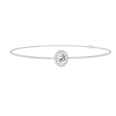 « L'ATELIER » Nº200304Pulsera Oro blanco 9 quilates - Diamante de laboratorio Ovalo 0.3 quilates - Halo Diamante de laboratorio - Cadenas Veneciana