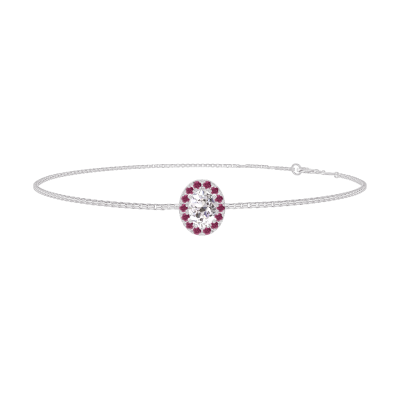 « L'ATELIER » N.º 200311Pulsera Oro blanco 18 quilates - Diamante de laboratorio Ovalo 0.3 quilates - Halo Rubí - Cadenas Veneciana