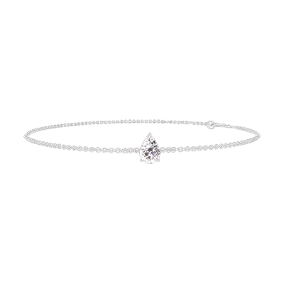 « L'ATELIER » Nº200324Pulsera Oro blanco 9 quilates - Diamante de laboratorio Pera 0.3 quilates - Cadenas Esclavas