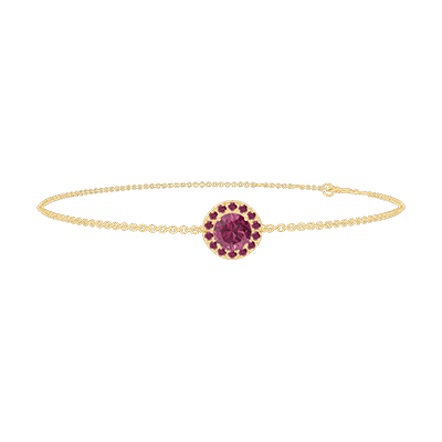 « L'ATELIER » N.º 200401Pulsera Oro amarillo 18 quilates - Rubí redondo 0.3 quilates - Halo Rubí - Cadenas Esclavas 4.7