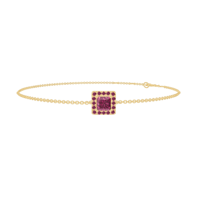 « L'ATELIER » N.º 200434Pulsera Oro amarillo 9 quilates - Rubí Princesa 0.3 quilates - Halo Rubí - Cadenas Esclavas