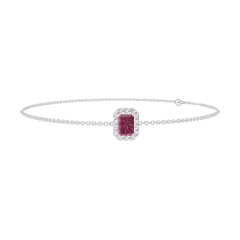 Pulsera Oro blanco 9 quilates - Rubí Rectángulo 0.3 quilates - Halo Diamante - Cadenas Esclavas