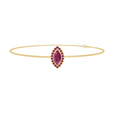 « L'ATELIER » N.º 200566Pulsera Oro amarillo 9 quilates - Rubí Marquesa 0.3 quilates - Halo Rubí - Cadenas Veneciana