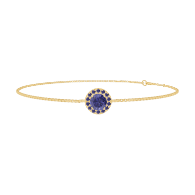 « L'ATELIER » Nº200605Pulsera Oro amarillo 18 quilates - Zafiro azul redondo 0.3 quilates - Halo Zafiro azul - Cadenas Veneciana 4.7