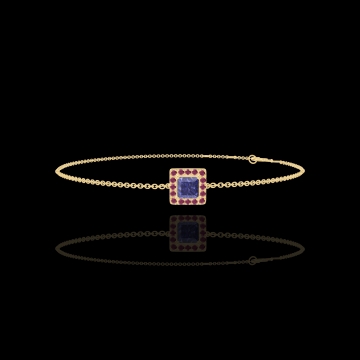 « L'ATELIER » Nº200625Pulsera Oro amarillo 18 quilates - Zafiro azul Princesa 0.3 quilates - Halo Rubí - Cadenas Esclavas