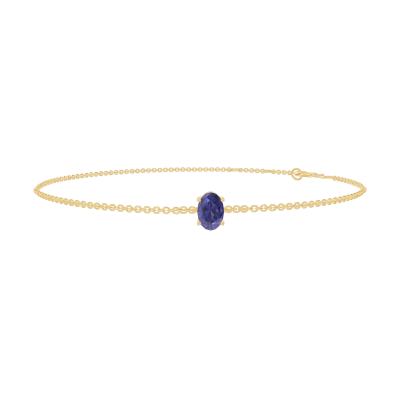 « L'ATELIER » N.º 200673Pulsera Oro amarillo 18 quilates - Zafiro azul Ovalo 0.3 quilates - Cadenas Esclavas