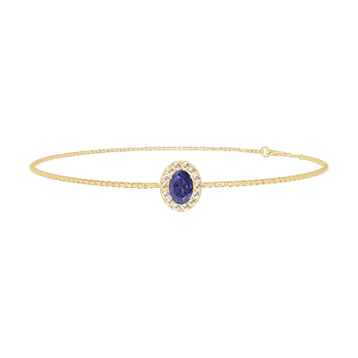 « L'ATELIER » N.º 200685Pulsera Oro amarillo 18 quilates - Zafiro azul Ovalo 0.3 quilates - Halo Diamante - Cadenas Veneciana