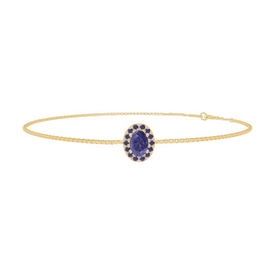 « L'ATELIER » Nº200702Pulsera Oro amarillo 9 quilates - Zafiro azul Ovalo 0.3 quilates - Halo Zafiro azul - Cadenas Veneciana