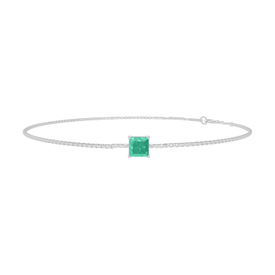 « L'ATELIER » Nº200808Pulsera Oro blanco 9 quilates - Esmeralda Princesa 0.3 quilates - Cadenas Veneciana