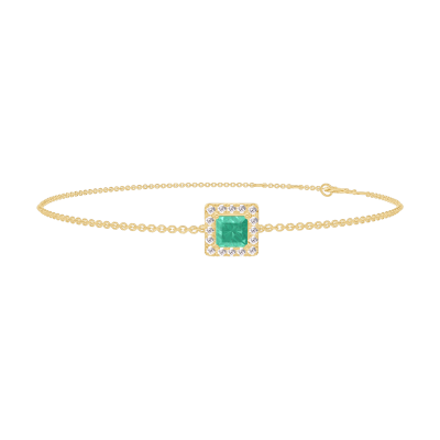 « L'ATELIER » N.º 200809Pulsera Oro amarillo 18 quilates - Esmeralda Princesa 0.3 quilates - Halo Diamante - Cadenas Esclavas