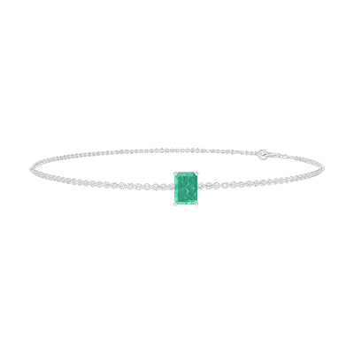 « L'ATELIER » Nº200836Pulsera Oro blanco 9 quilates - Esmeralda Rectángulo 0.3 quilates - Cadenas Esclavas