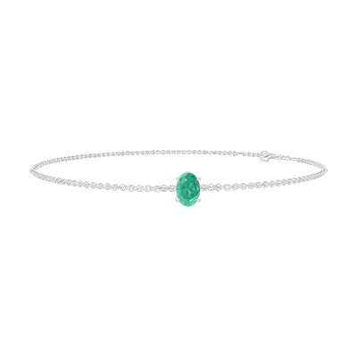 « L'ATELIER » N.º 200868Pulsera Oro blanco 9 quilates - Esmeralda Ovalo 0.3 quilates - Cadenas Esclavas