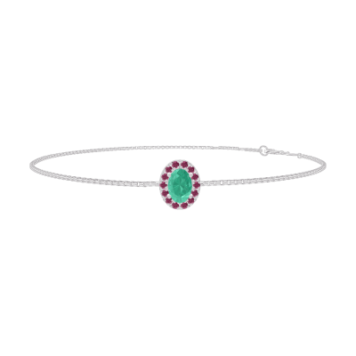 « L'ATELIER » N.º 200887Pulsera Oro blanco 18 quilates - Esmeralda Ovalo 0.3 quilates - Halo Rubí - Cadenas Veneciana