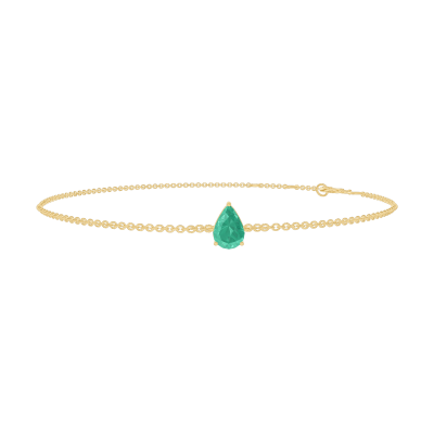 « L'ATELIER » N.º 200898Pulsera Oro amarillo 9 quilates - Esmeralda Pera 0.3 quilates - Cadenas Esclavas