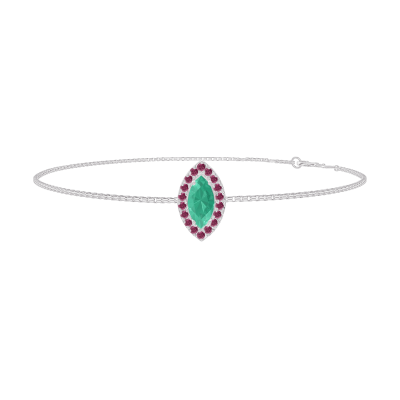 « L'ATELIER » N.º 200951Pulsera Oro blanco 18 quilates - Esmeralda Marquesa 0.3 quilates - Halo Rubí - Cadenas Veneciana