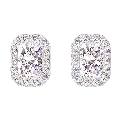 « L'ATELIER » N.º 201000Pendientes Oro blanco 9 quilates - Diamante Rectángulo 0.3 quilates (2 X) - Halo Diamante