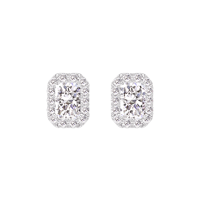« L'ATELIER » N.º 201096Pendientes Oro blanco 9 quilates - Diamante de laboratorio Rectángulo 0.3 quilates (2 X) - Halo Diamante de laboratorio