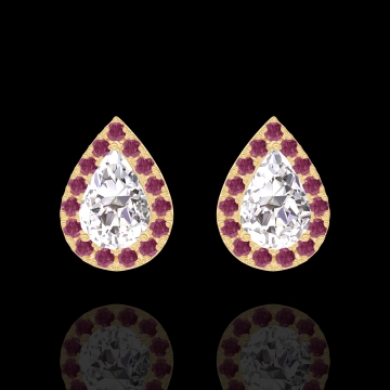 « L'ATELIER » Nº201129Pendientes Oro amarillo 18 quilates - Diamante de laboratorio Pera 0.3 quilates (2 X) - Halo Rubí