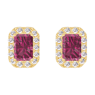 « L'ATELIER » Nº201189Pendientes Oro amarillo 18 quilates - Rubí Rectángulo 0.3 quilates (2 X) - Halo Diamante