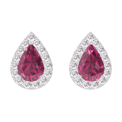 « L'ATELIER » N.º 201223Pendientes Oro blanco 18 quilates - Rubí Pera 0.3 quilates (2 X) - Halo Diamante
