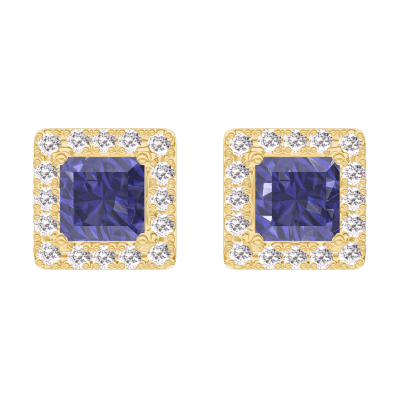 « L'ATELIER » N.º 201269Pendientes Oro amarillo 18 quilates - Zafiro azul Princesa 0.3 quilates (2 X) - Halo Diamante