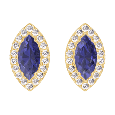 « L'ATELIER » N.º 201334Pendientes Oro amarillo 9 quilates - Zafiro azul Marquesa 0.3 quilates (2 X) - Halo Diamante