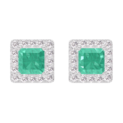 « L'ATELIER » N.º 201368Pendientes Oro blanco 9 quilates - Esmeralda Princesa 0.3 quilates (2 X) - Halo Diamante