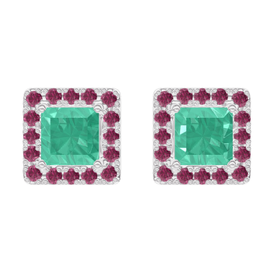 « L'ATELIER » Nº201372Pendientes Oro blanco 9 quilates - Esmeralda Princesa 0.3 quilates (2 X) - Halo Rubí