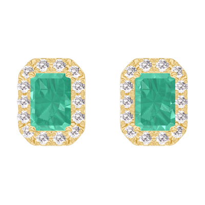 « L'ATELIER » N.º 201382Pendientes Oro amarillo 9 quilates - Esmeralda Rectángulo 0.3 quilates (2 X) - Halo Diamante